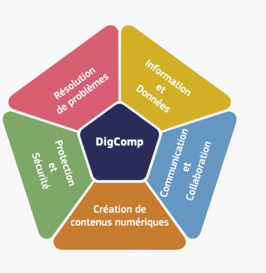 La formation Pix couvre 5 domaines clés, issus du cadre européen des compétences numériques DigComp :